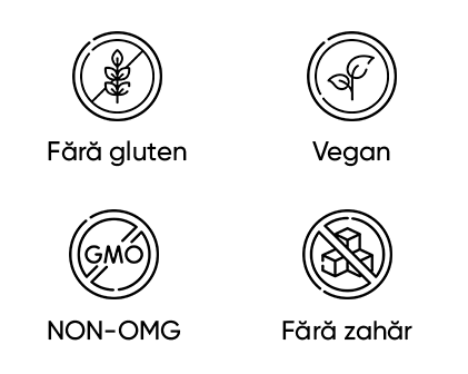 Fără zahăr adăugat, fără aditivi, coloranți, OMG, gluten, soia, metale grele sau alte deșeuri.